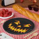 Plaque papier de fête d'Halloween affichée avec une impression citrouille effrayante.
