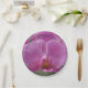 Cette plaque en papier présente une belle orchidée rose avec des gouttes de rosée. Choisissez votre assiette de taille. Idéal pour les mariages et les fêtes.