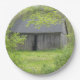 Cette plaque en papier présente une ancienne grange patinée au printemps et est située à Killingworth, Connecticut.