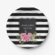 Assiettes En Carton Plaque papier Mariage à rayures et pivoines