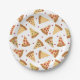 Tranches de pizza de style rétro avec toutes les options de garnissage et petits coeurs rouges sur une plaque de papier arrière - plan blanc.