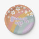 Plaques d'anniversaire super One Retro Rainbow avec marguerites.