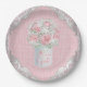 Burlap et mason jarre plaques de papier baby shower avec belle rose rose rose et bocal pour bébé en mason sur un joli arrière - plan rose et blanc burlap argent. Ces douces plaques de papier baby shower en bocal de burlap rustique sont facilement customisées pour votre événement en ajoutant simplement le texte de votre choix, ou vous pouvez supprimer le texte.