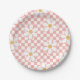 Retro checker print avec Daisies Anniversaire assiettes de fête en rose