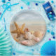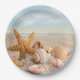 Coquillages sur les plaques de papier de la fête de la plage. Des serviettes de bain à remous sont à votre disposition pour vous divertir.