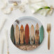 Plaques de fête en papier avec image de planches de surf sur la plage.