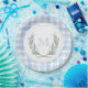 Une aquarelle bleu en vichy classique avec une crête de laurier pour le monogramme initial.