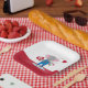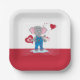 De très jolies plaques en papier rouge et blanc ornées d'un éléphant de bande dessinée tenant quelques fleurs et diffusant un peu d'amour et de bonté. Parfait pour une fête de la Saint-Valentin pour enfants ou un baby shower. Recherchez des serviettes en papier et des tasses en papier assorties. © ArianeC Illustrations-Tous droits réservés