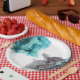 Assiettes En Carton plaques en papier d'encre d'alcool turquoise et gr