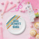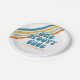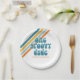 Plaques super One Retro Style Anniversaire avec rayures jaunes, orange et bleues.