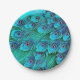 Des plumes de paon bleu et vert ornent ces belles assiettes de fête en papier. Parfait pour un mariage ou une occasion spéciale.