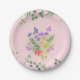 Un joli design pastel de fleurs éclaboussées décorant une plaque de papier rond de 7 pouces.