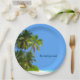 Plats de partie de plage d'été avec l'image pittoresque de l'palmiers et sable côtiers de plage avec l'océan tropical à l'arrière-plan avec le texte que vous pouvez customiser et personnaliser. Une conception naturelle avec l'océan et le feuillage tropical conçus comme plaque à papier de thème de plage que vous pouvez utiliser pour amuser et servir vos invités de partie.