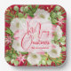 Les grandes plaques en papier carré personnalisées sont ornées de fleurs d'hiver modernes et élégantes et d'un poinsettia rose avec Joyeux Noël et votre nom en lettres chic. CORRESPONDRE des articles dans notre magasin.