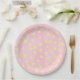 Assiettes en papier à points roses et jaunes de printemps. Le motif peut être transféré sur des serviettes en papier assorties.