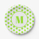 Assiettes En Carton Polka Dot Monogramme initial Lime vert sur blanc