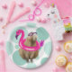 Assiettes En Carton Pool Party Cute Capybara Avec Flotte Flamant rose