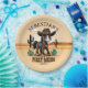 Premier Rodeo mignon cowboy bébé cheval fête d'anniversaire vaisselle personnalisée, adorable cheval de bébé marron dans un casquette cowboys et décoré selle sur le paysage de l'Arizona pour cowboys western fête d'anniversaire thème.