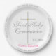 Assiettes En Carton Première Sainte Communion Fille Nom Croix d'argent