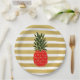 Assiettes En Carton Rayures d'or rouges et ananas tropical vert