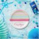 Célébrons la fille d'anniversaire avec ces plaques à papier modernes, féminines et élégantes. Caractéristiques personnalisables de cette plaque à papier roses et rayures bleues d'aquarelle avec l'accent de parties scintillantes d'or de faux. Personnalisez en ajoutant des noms et d'autres détails.