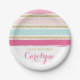 Assiettes En Carton Rayures en pastel roses d'aquarelle avec des