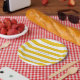 Assiettes En Carton Rayures Jaunes et Blanches Modernes Gratuits Perso