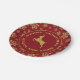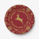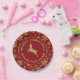 Un renne de parties scintillant en faux or brillant est au centre de ces jolies plaques de papier saisonnières. Il est entouré de texte en or qui dit Joyeux Noël Bonne Année. Une bordure circulaire de flocons de neige à la gloire d'or finit les bords. Tout est placé sur un arrière - plan rouge de Noël. Ces assiettes ajouteront certainement un peu d'éclat à vos réunions de vacances ! *Veuillez noter que l'image est imprimée et ne contient aucune parties scintillant réelle.*