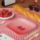 Assiettes En Carton Red gradient geometric mesh pattern Monogram
