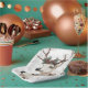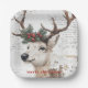 Cette plaque en papier festif présente une illustration rustique d'un renne avec une couronne de pin et de baies rouges sur ses bois. L'arrière - plan a un look vintage, texturé avec script manuscrit, et "Joyeux Noël" est affiché en gras rouge. Parfait pour ajouter une touche de vacances confortable à votre période de Noël.