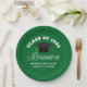 Une plaque de papier sur mesure classe de réunion de fête en vert et blanc pour un lycée, collège ou université. Customisez avec votre nom d'école et la classe de fin d'études sous l'élégante calligraphie pour un décor de célébration d'anciens élèves personnalisé.