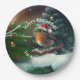 Assiettes En Carton Robin Père Noël sur mesure sur une serviette d'arb