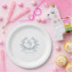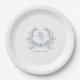 Assiettes En Carton Romantique Dusty Blue Monogram Crest Mariage