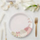 Assiettes En Carton Romantique rose & fleurs blanches or