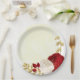 Assiettes En Carton Romantique rouge foncé & fleurs blanches or