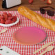 Assiettes En Carton Rosé clair à orange brillant dégradé solide