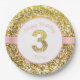 Le rose et plats d'anniversaire d'or les troisième sont scintillants et très jolis. Ils ont un arrière - plan scintillant d'or avec des accents roses et un grand "3" au milieu avec la pièce d'ajouter le nom de votre enfant.