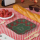 Un motif en plaid rustique et festif en rouge, vert et beige fait un ajout charmant à vos fêtes de vacances et divertissant. Cette conception a un cadre central vert correspondant autour du texte "Joyeux Noël". Le modèle de texte peut être personnalisé avec d'autres termes si vous le souhaitez.
