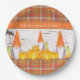Assiettes En Carton Rustic Fall Gnome orange plaid citrouille