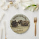 Set a heartfelt tone at your Thanksgiving table with this rustic paper plate design, featuring Destei's photograph of three pinecones on natural wood. The sample text “Grateful & Thankful” appears at the top in an elegant script font with space below to personalize with your family name or a message like “Thanksgiving 20YY with the Thompsons.” A perfect addition to fall gatherings, this design brings a cozy, nature-inspired touch to your celebration.