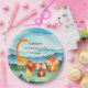 Assiettes En Carton Safari Zoo Animaux Aquarelle bleu vert