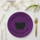 Cette assiette de fête d'Halloween violet fait partie d'un groupe qui présente les Soeurs Sanderson du film Hocus Pocus.