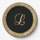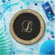 Scénario or Monogram L sur arrière - plan noir avec arrière - plan cercle or brillant.