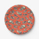 Ces plaques en papier présentent des crânes de dinosaure illustrés à la main en bleu marine et de la crème sur un arrière - plan rouge-orange vif.