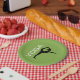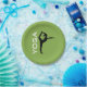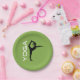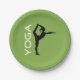Plaques en papier avec un design simple de la silhouette noire d'une femme faisant une pose de yoga. Placez-vous sur un arrière - plan vert avec du yoga écrit en blanc.