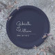 Un design classique qui présente les noms du couple heureux dans un script élégant au-dessus de la date spéciale sur un arrière - plan bleu marine. Conçu par Thisisnotme©