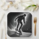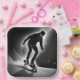 Un skateboardeur est capturé en pleine action, planant sur un plateau tandis que des éclairs illuminent le ciel nocturne derrière lui