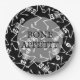Skeletons sur un arrière - plan noir et BONE APPÉTIT en lettrage chic, ces assiettes en papier sont amusantes pour votre fête d'Halloween ou d'anniversaire d'Halloween.