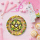 Un collage floral Solstice Sunflower et Elecamvolet lumineux, avec pentacle à aquarelle brune, tournesols, fleurs à base de plantes Elecamvolet et une belle couronne de blé. Partagez un sourire lors de votre fête du Solstice d'été avec ce design lumineux et coloré!
