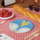 Plaques à papier de souris et de fromage avec les serviettes assorties.